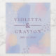 Add an extra special detail to your celebration with these gorgeous personalised wine labels featuring original artwork in a soft colour palette of pastel blue, pink, peach and lavender. This design is a modern take on the Memphis Style design that was popular in the 1980s. Easily personalise. Coordinating items available. Original artwork by Debbie at The Spotted Olive.