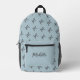 Pastel Blue and Dark Grey | Calligraphy Name, Initial Pattern Printed Backpack