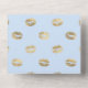 Watercolor floral wedding invitation in accents of baby blue and faux glitter gold with a whimsical kiss lips pattern on the reverse.