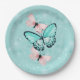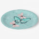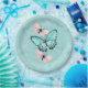 This paper plate has no text, just a beautiful graphic design of three butterflies. You can add text with the customise button. This napkin would be great for a summer tea party for the ladies. The background behind the butterflies is a pretty shade of sky blue with tiny scattered white dots. There are three butterflies. The centre one is the largest and is shades of blue with a black body and black accents on the wings. There are two smaller pink butterflies, one above and one below, the blue one. The smaller butterflies are light pink with darker pink shading and a black body . Matching items are in the "Butterflies" collection in my Zazzle store.