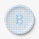 Pastel Blue and White Gingham Monogrammed Paper Plate