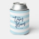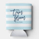 Pastel Blue and White Stripes Blue Team Groom Can Cooler