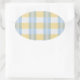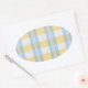 Pastel Blue and Yellow Plaid Pattern Oval Sticker