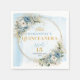 Elevate your Quinceañera celebration with these elegant paper napkins, beautifully designed with watercolor dusty blue flowers, soft eucalyptus greenery, and a shimmering gold glitter frame. The delicate floral arrangements in boho, bohemian, or watercolor styles paired with elegant script lettering create a refined, sophisticated look that perfectly complements any pastel or dusty blue themed party.