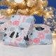 This full-frame wrapper design features a soft pastel blue backdrop adorned with a harmonious arrangement of stylised floral and botanical elements. Pink and light-purple flowers with outlined petals and textured centres take centre stage, some featuring delicate speckles of black and grey for added depth. Abstract circular designs in shades of grey, blush pink and rose add a layered, artistic touch, while red berry clusters and dark reddish-brown branches provide vibrant accents. Black stylised flowers and line-drawn leaves further enhance the pattern, creating a textured, watercolor-like effect. Perfect for elegant gift wrapping or decorative projects.
