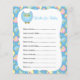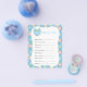 Pastel Blue Cute Owl Baby Shower Theme - Wishes Baby Shower Game Flyer. Look for different size cards (please check size before ordering) and different colours are available. ⭐This Product is 100% Customisable. Graphics and text can be deleted, moved, resized, changed around, rotated, etc... 99% of my designs in my store are done in layers. This makes it easy for you to resize and move the graphics and text around so that it will fit each product perfectly. ⭐ (Please be sure to resize or move graphics if needed before ordering) You can also "TRANSFER DESIGN" on other Zazzle products and adjust the design to fit most of Zazzle items. (button is down on the right side of the page) Some of the text graphics have ready to fill in the box(es) or you can Click on the "CUSTOMIZE" button to add, move, delete, resize, background colour or change any of the font or graphics. The design is made with high resolution vector and/or digital graphics for a professional print. ⭐NOTE: (THIS IS A PRINT. All zazzle product designs are "prints" unless otherwise stated under "About This Product" area) The design will be printed EXACTLY like you see it on the screen and on the product...so please make sure when you do your changes on the resizing of any of the graphics or text that it fits in the areas correctly and that your spelling and wording is how you like it to be in size, colour and font. If you have any questions about the "DESIGN" or need help please contact me at siggyscott@comcast.net or visit my store link: http://www.zazzle.com/designsbydonnasiggy?rf=238713599140281212 (Copy and Paste) I'll be happy to help. ⭐ All other questions (shipping, refund, the printing, the product, etc...) please contact Zazzle or the Maker ⭐DIRECTLY⭐. Thank you for the support and stopping by my store - DesignsbyDonnaSiggy. © Donna Siegrist