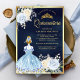 Pastel Blue Floral Dress Navy Gold Quinceanera Invitation