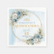Elevate your Quinceañera celebration with these elegant paper napkins, beautifully designed with watercolor dusty blue flowers, soft eucalyptus greenery, and a shimmering gold glitter frame. The delicate floral arrangements in boho, bohemian, or watercolor styles paired with elegant script lettering create a refined, sophisticated look that perfectly complements any pastel or dusty blue themed party.