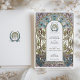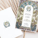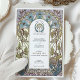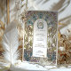 This elegant Art Nouveau-inspired wedding invitation features a delicate arrangement of soft blue flowers, muted purples, and intricate green foliage, framed by ornate golden accents and flowing lines. The timeless design captures the sophistication and charm of the Art Nouveau movement with its harmonious pastel colour palette and exquisite botanical details. Perfect for vintage, garden, or nature-inspired weddings, this customisable invitation offers a touch of refined artistry and elegance to set the tone for your special day.