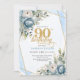 Pastel blue gold frame stylish floral 90 birthday invitation