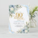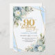 Pastel blue gold greenery luxe script 90 birthday invitation
