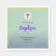 A vibrant spring season design featuring a pastel blue green gradient background with colourful yellow frame, with striking purple cross against a pastel sun, and pretty purple handwriting typography for the word 'Baptism'. Fully customisable.