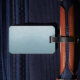 light pastel sky blue leather travel tag for your luggage and bags
