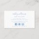 Printed on premium white paper, the business card showcases crisp, clear text and a clean layout that includes your name, contact details, and social media handles, all arranged for optimum clarity and impact. The soft white tone provides a neutral backdrop that highlights the Pastel Blue monogram, ensuring that your business card not only communicates your contact information but also your unique brand identity. Contact designer for matching products. Copyright Anastasia Surridge, all rights reserved.