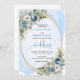 Set the tone for an unforgettable celebration with this elegant watercolor wedding invitation, beautifully designed with dusty blue florals, soft white peonies, and delicate eucalyptus