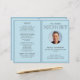 In Loving Memory - Funeral Order of Service folding programs. Modern design with in pastel blue with dark grey font and borders - fully customisable template.