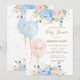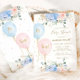 Pastel Blue Pink Floral Balloons Twins Baby Shower Invitation
