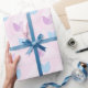 Pastel Blue Purple Tulips & Elegant Geometric Pink Wrapping Paper
