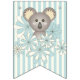The product design features a baby koala surrounded by flowers. The adorable animal cartoon with pastel blue stripes makes cute and unique bunting flags for kids birthday party.