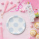 A pastel blue and white large polka dot pattern is featured on these custom paper plates. Perfect for a boy baby shower, birthday party, bridal shower and more.