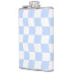 Pastel Blue White Retro Checkerboard Pattern Hip Flask