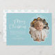 Pastel Blue White Wavy Retro Photo Holiday Card