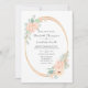 Blush pink polygonal wedding invitation with gold glitter geometric frame designed to be quickly and easily customised to your event specifics.