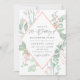 Organic inspired greenery blush pink and mint pastel shades wedding invitation with geometric frame designed to be quickly and easily customised to your event specifics.