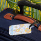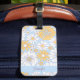 Introducing this personalized luggage tag featuring a mesmerizing retro bohemian daisy graphic design in light blue, gold, and white. This travel accessory is a perfect blend of artistry and functionality, promising you a unique and stylish experience whether you're working or playing.