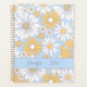 Introducing this personalised planner cover featuring a mesmerising retro bohemian daisy graphic design in light blue, gold, and white. This planner is a perfect blend of artistry and functionality, promising you a unique and stylish experience whether you're working or playing.