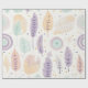 Pastel Boho Feather Pattern with Geometric Accents Wrapping Paper