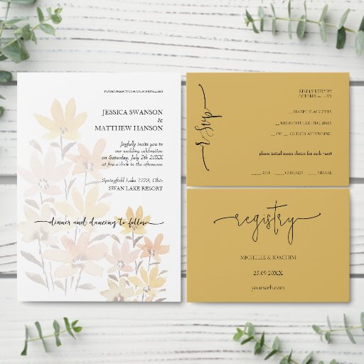 Pastel Boho Mustard Yellow Wildflowers Wrapping Paper