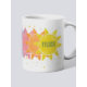 This is a happy mug for the one who wakes up in a good mood! You can personalise this mug with their name, with repeating bohemian sunshine drawings in rainbow colours on a background of pastel polka dots. So cute!