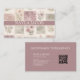 Trendy pastel purple green quilt patchwork pattern business card with rich burgundy accents and farmhouse floral charm. Designed for Handmade Clothing brands, quilters, seamstresses, and creative small business owners. Features geometric quilting details, soft spring summer tones, vintage feminine appeal, and modern QR code integration for standout branding.