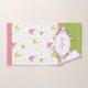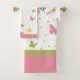 Add a beautiful touch of springtime to your home bathroom decor with this butterfly floral bath towel set. Each towel has a pattern of pastel pink, yellow, and green butterflies and polka dots. There's also a place for your custom text, such as a first name, in the middle of a wreath of flowers.