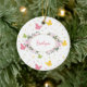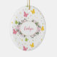 Add a beautiful touch of springtime to your home holiday decor with this butterfly floral Christmas tree ornament. Ornament has a pattern of pastel pink, yellow, and green butterflies and polka dots. In the centre there's a place for your custom text, such as a first name and year, in the middle of a wreath of flowers.