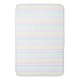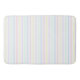 This bath mat features pastel candy stripes. Pale blue, baby pink, lemon yellow, lilac and mint green. Matching shower curtain is available.
