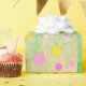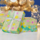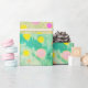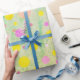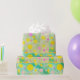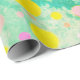 Colourful pastel circles of yellow, pink and green on green background wrapping paper. Bright and cheery in modern design. Fun wrapping paper for children.