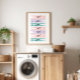 A fun way to brighten up the mundane task of doing laundry, this large poster print can be hung both vertically or horizontally and features a collection of simply illustrated clothes pins in a palette of feminine and pretty pastel pink, purple and teal.