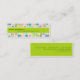 A unique personal profile card that borrows its style from Mondrian. Pastel coloured squares and triangles come together and make a soft grid. A great small sized card that fits easily in a wallet or a pocket. Your name and most important contact information stand out against the lime green panel while the rest of your information prints on the back against a full green panel. Available in alternate colours with matching stickers.
