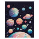 Pastel colour planets in dark space poster