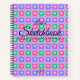 A personalised sketchbook with a cute pastel-coloured square pattern with hearts inside the pattern.