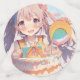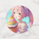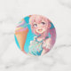 Anime Birthday confetti. Beautiful Anime girl with pastel colours, Colours used are pink, teal, orange, blue, purple and blue. Cute and colourful children's Ai art. generatviecontent