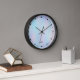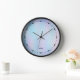 Pastel colours of blue and pink tones, iridescent background with black face number, and custom black text.