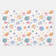 Pastel colours space planets on white background wrapping paper sheet