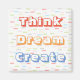 Pastel Colours Think Dream Create Magnet to add to your fridge collection. A cool gift / present idea for all who love collecting magnets, custom design personalised items, positive vibes, travelling, art, fun, minimalism etc. Keywords: blue, red, yellow, adventure, motivation, motivational etc.