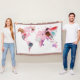 This design features a map of the world in pastel colours and constructed of makeup and makeup tools.