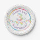 Add a burst of colour to your child’s third birthday celebration with these festive paper plates featuring pastel watercolor confetti, rainbow bunting, and personalised age and name. Perfect for party animal or rainbow-themed birthdays, these plates bring playful charm to the table and make cleanup easy after the fun.