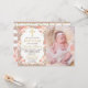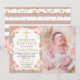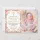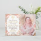 Pastel Coral Floral Gold Cross Girl Baptism Photo Invitation