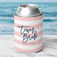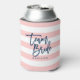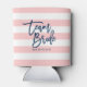 Pastel Coral Pink & White Stripes Blue Team Bride Can Cooler